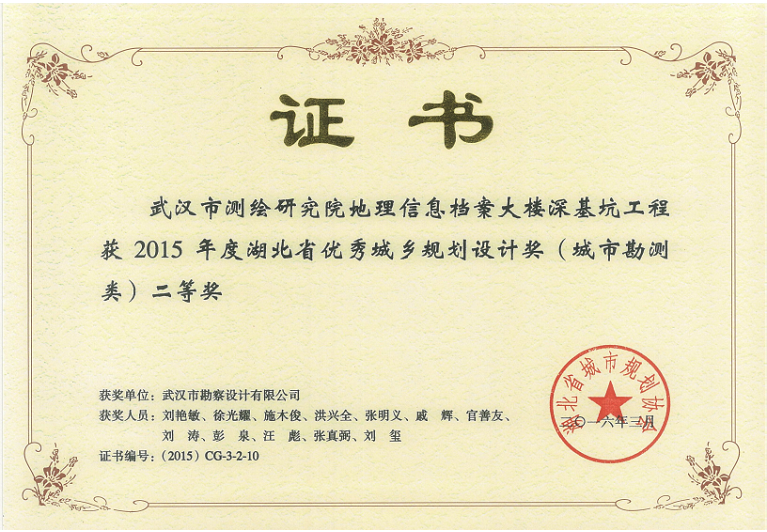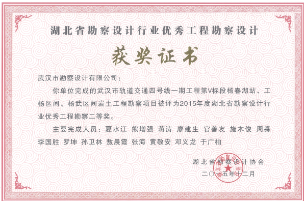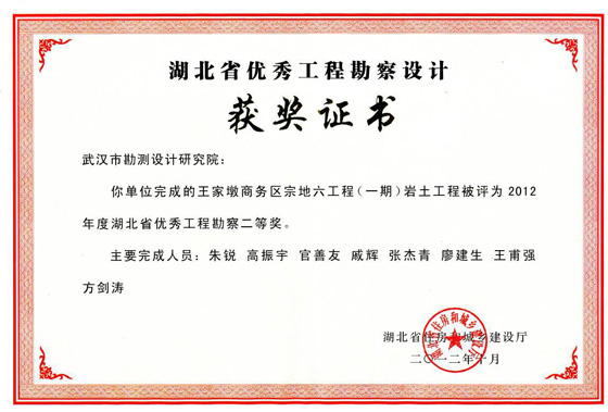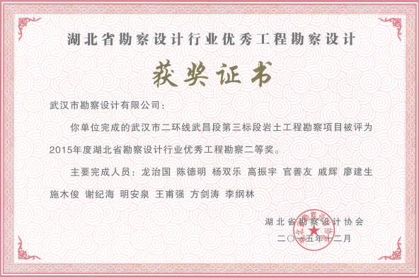 湖北省優(yōu)秀工程勘察二等獎(jiǎng)