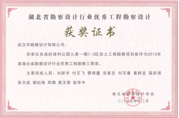 湖北勘察設(shè)計(jì)優(yōu)秀工程勘察三等獎(jiǎng)