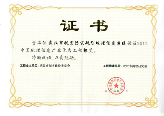 2012年中國(guó)地理信息產(chǎn)業(yè)優(yōu)秀工程銀獎(jiǎng)