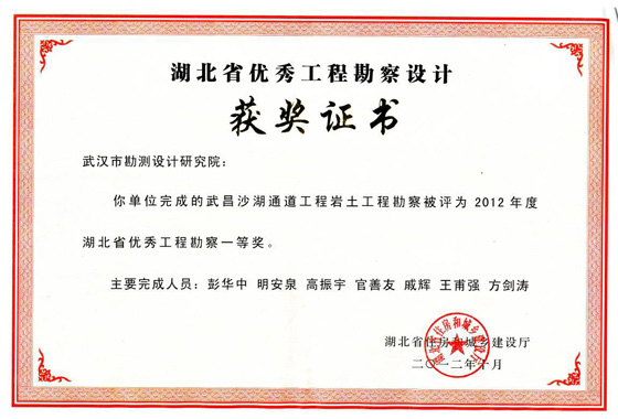 湖北省優(yōu)秀工程勘察一等獎(jiǎng)