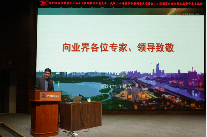 2019年11月5日上午,由武漢勘察設(shè)計(jì)協(xié)會(huì)工程勘察專業(yè)委員會(huì)、武漢土木建筑學(xué)會(huì)勘測(cè)專業(yè)委員會(huì)主辦,武漢市勘察設(shè)計(jì)有限公司承辦的“2019年武漢勘察設(shè)計(jì)協(xié)會(huì)工程勘察專業(yè)委員會(huì)、武漢土木建筑學(xué)會(huì)勘測(cè)專業(yè)委員會(huì)工程勘察行業(yè)創(chuàng)新發(fā)展暨學(xué)術(shù)交流會(huì)”在武漢市測(cè)繪院307學(xué)術(shù)報(bào)告廳舉辦。