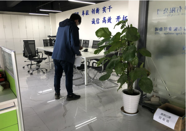 臨空分公司組織人員在復工前一天對辦公室、宿舍、生產車輛等進行了徹底消殺,并為員工準備了口罩、酒精、消毒水、防護服等防疫物品。為了保證員工的個人生命安全,做到每人每日測量體溫并做好記錄,嚴格按照要求佩戴口罩;免洗消毒液隨身攜帶隨時隨地消毒;訂購分餐盒飯,一人一桌單獨用餐;按值班表每日專人對工作區域進行消毒。