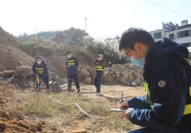 此次演練活動(dòng)模擬了在強(qiáng)降雨天氣影響下,發(fā)現(xiàn)黃陂區(qū)蔡店街張家大灣某居民房屋后邊坡失穩(wěn),存在滑坡險(xiǎn)情,情況十分緊急。險(xiǎn)情發(fā)生后,自然資源、應(yīng)急管理部門及勘察公司協(xié)同街道、鄉(xiāng)村一起密切配合、分工協(xié)作,組織應(yīng)急隊(duì)伍有效應(yīng)對(duì),并迅速開展地質(zhì)災(zāi)害應(yīng)急救援工作,演練具體內(nèi)容包括地質(zhì)災(zāi)害氣象風(fēng)險(xiǎn)預(yù)警、網(wǎng)格專管員開展巡查監(jiān)測(cè)、地質(zhì)災(zāi)害險(xiǎn)情上報(bào)、地質(zhì)災(zāi)害應(yīng)急響應(yīng)、應(yīng)急隊(duì)伍實(shí)施救援、邊坡雷達(dá)監(jiān)測(cè)預(yù)警、無人機(jī)偵測(cè)和救援等演練科目。