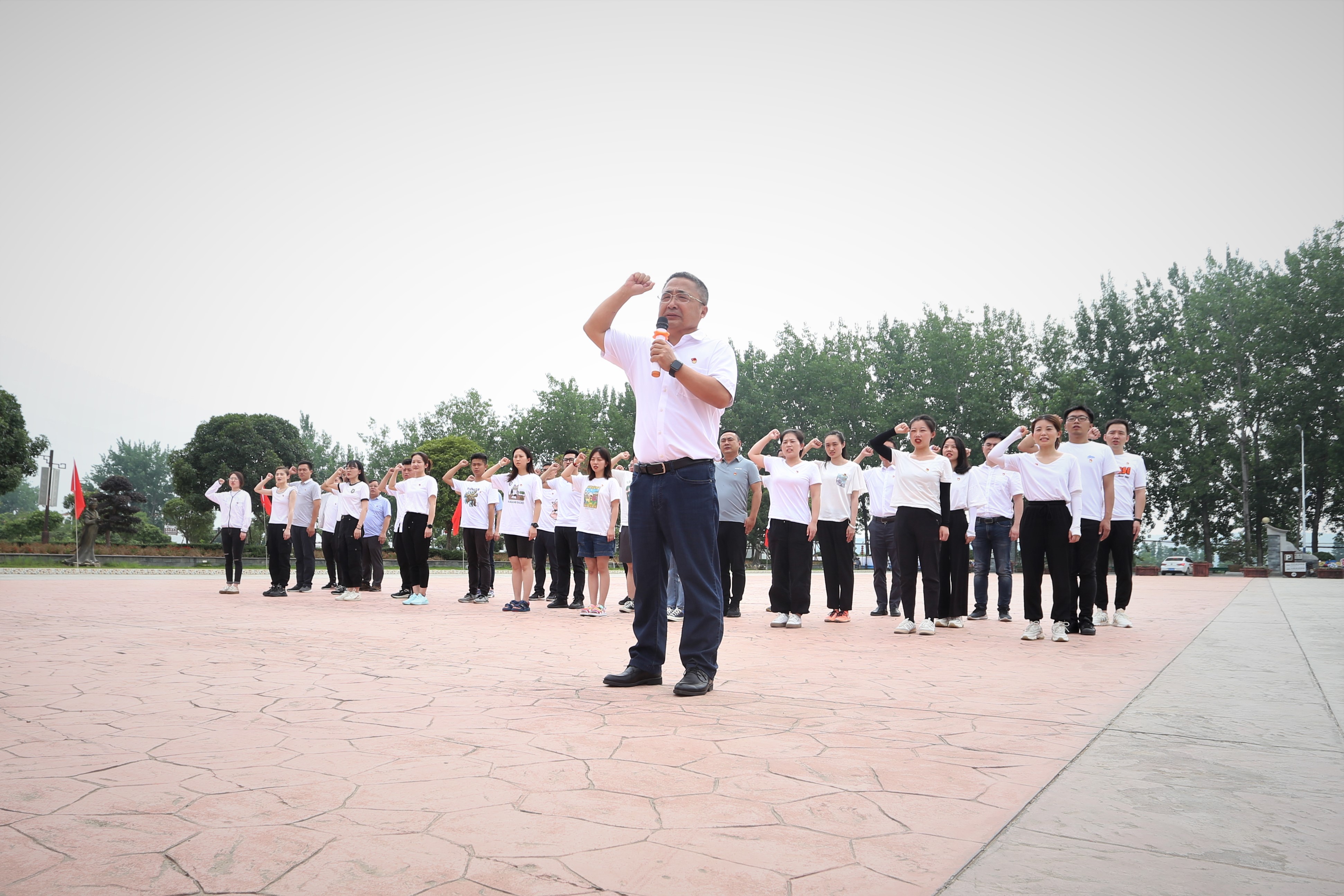 “我志愿加入中國共產(chǎn)黨,擁護(hù)黨的綱領(lǐng),遵守黨的章程......”。公司黨總支副書記戚輝帶領(lǐng)全體黨員面向黨旗莊嚴(yán)宣誓,鏗鏘有力的宣誓聲在園區(qū)久久回蕩。