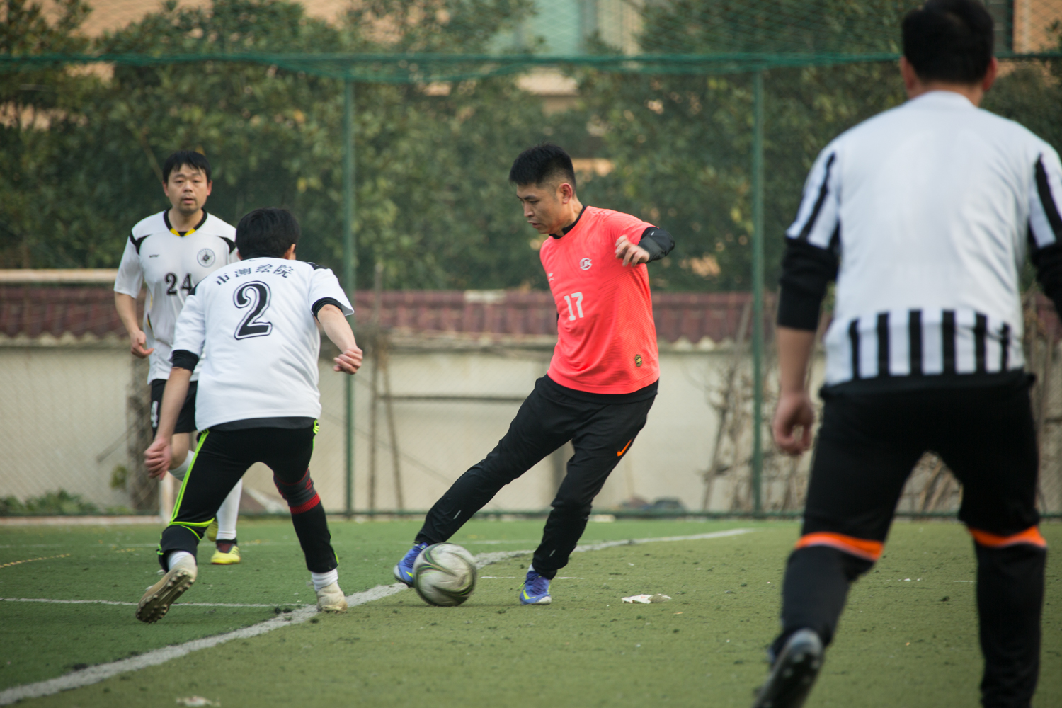 隨著裁判一聲哨響,武漢市測繪研究院黨委書記、院長肖輝為比賽開球,比賽正式開始。本次比賽分三節(jié)進(jìn)行,每節(jié)25分鐘。賽場上,隊(duì)員們激烈拼搶,盡情發(fā)揮球技,搶斷、過人、射門、撲救……精彩場面一個接一個,大家你追我趕,奮力馳騁,經(jīng)過激烈的角逐,比賽最后在和諧友好的氣氛中圓滿落下帷幕。