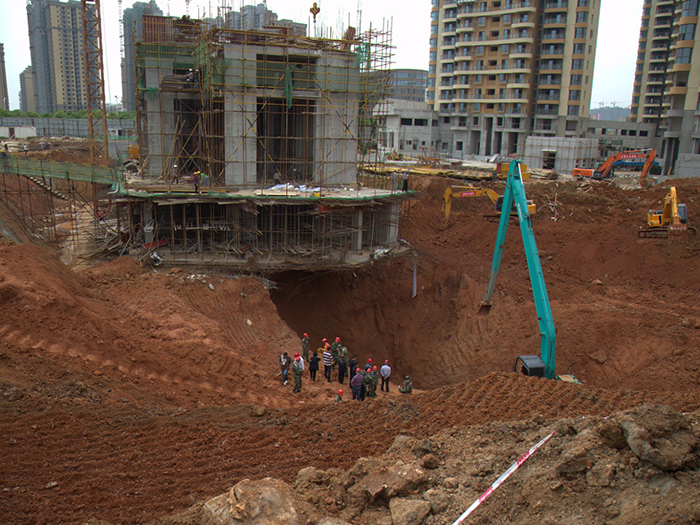 5月2日上午10時(shí)50分,江夏區(qū)文化大道江南新天地一在建樓房工地發(fā)生地面塌陷事故,兩名工作人員和一臺(tái)勘察鉆機(jī)被埋。我院受市建委委托,在肖建華院長(zhǎng)的指示下,迅速組織地災(zāi)、物探等相關(guān)專(zhuān)業(yè)專(zhuān)家,組成應(yīng)急救援隊(duì)伍,數(shù)次奔赴現(xiàn)場(chǎng)參與應(yīng)急救援工作。