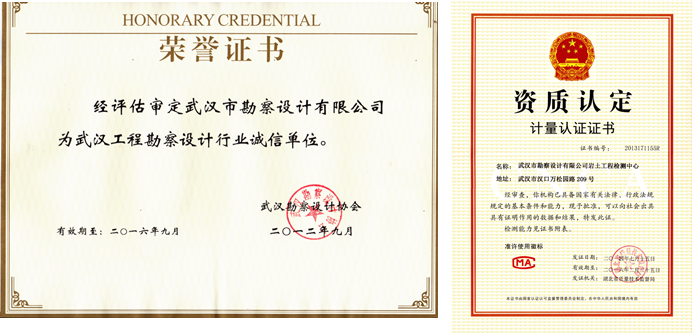 武漢市勘察設計有限公司順利承繼原武漢市勘測設計研究院工程勘察綜合類甲級資質(zhì)后,再傳喜訊。2014年7月,經(jīng)武漢企業(yè)信用管理服務中心權(quán)威認證,最終審定我院勘察公司為3A級信譽企業(yè)。