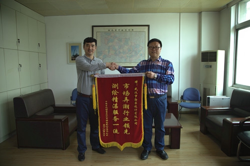 2016年4月12日上午,中國(guó)石化銷售有限公司湖北石油分公司將一面“市場(chǎng)弄潮行業(yè)領(lǐng)先,測(cè)繪精湛服務(wù)一流”的錦旗送到武漢市勘察設(shè)計(jì)有限公司,以感謝在加油站綠化驗(yàn)收測(cè)量及工程勘察項(xiàng)目中為其提供了優(yōu)質(zhì)、高效的服務(wù),同時(shí)就相關(guān)業(yè)務(wù)問(wèn)題進(jìn)行了交流探討,為下一步開(kāi)展合作奠定了良好的基礎(chǔ)。(綜合部、測(cè)繪工程公司聯(lián)合供稿)