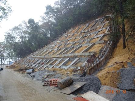 我公司承擔(dān)的東湖風(fēng)景區(qū)楓都山滑坡治理項目目前實施順利,已完成邊坡支護格構(gòu)梁的施工。