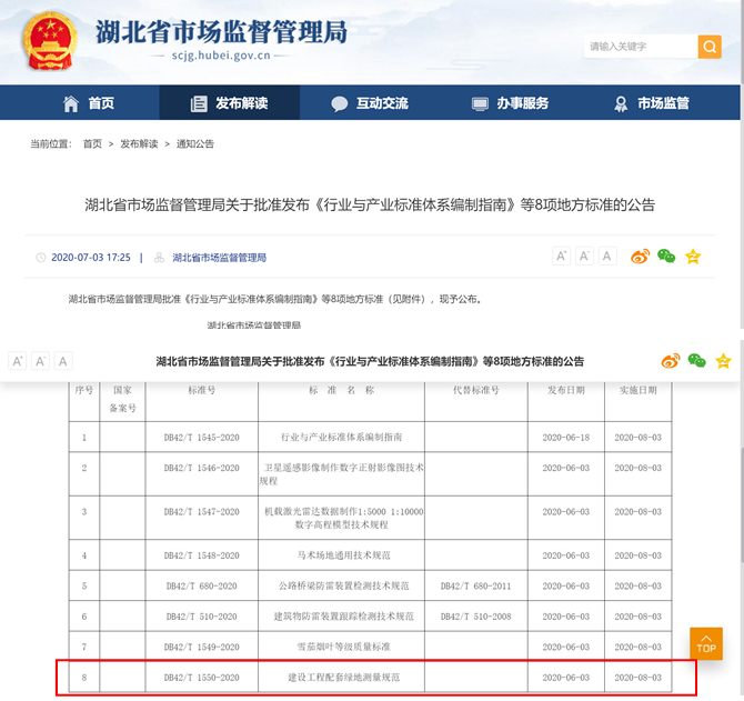 公司主編的《建設工程配套綠地測量規范》獲湖北省市場監督管理局批準發布